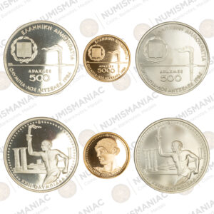Greece 🇬🇷 1984 Olympic Coin Set – Gold 5,000 Drachmai & 2× Silver 500 Drachmai, Los Angeles Games.
