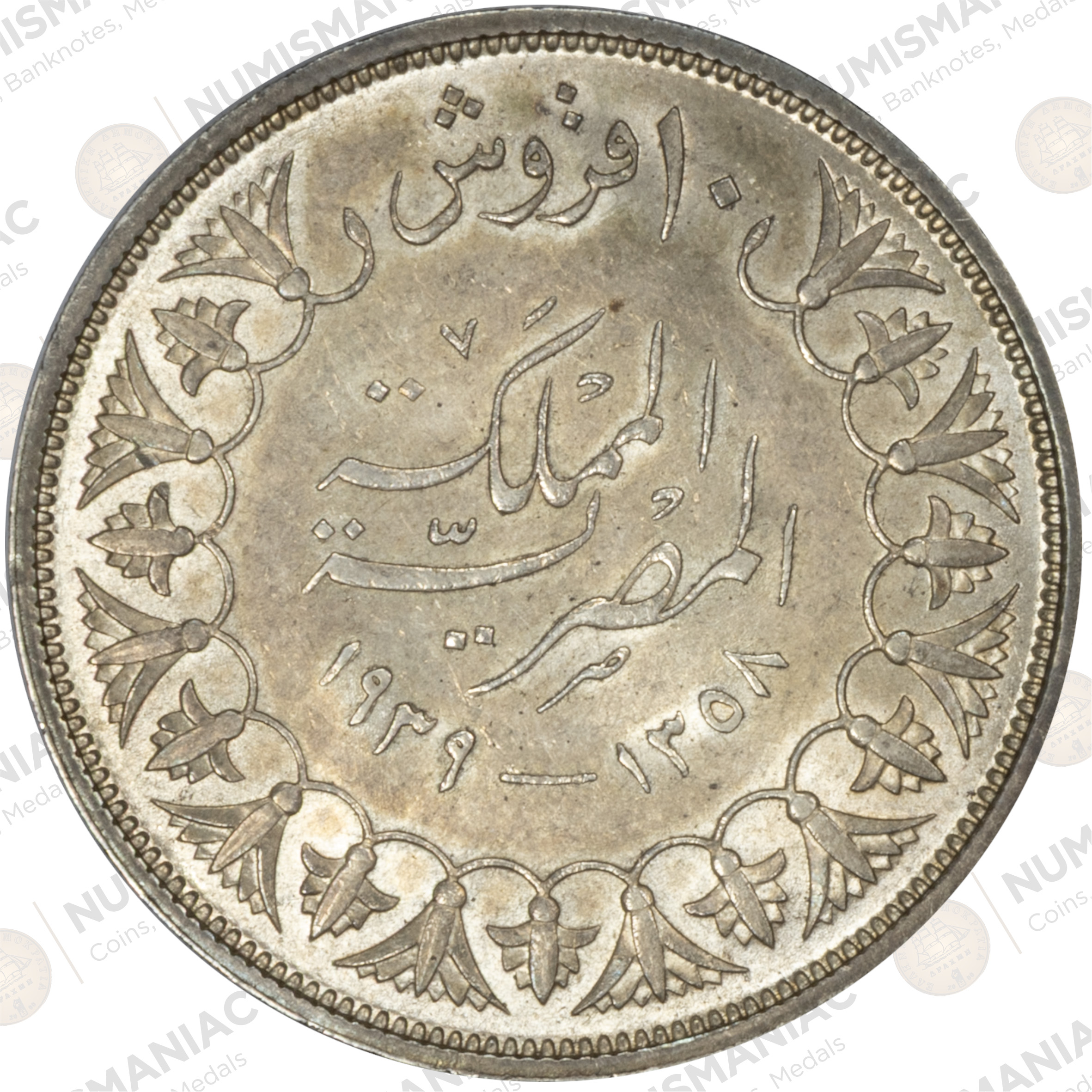Egypt 🇪🇬 Silver Coin10 Qirsh 1939 – Farouk I.