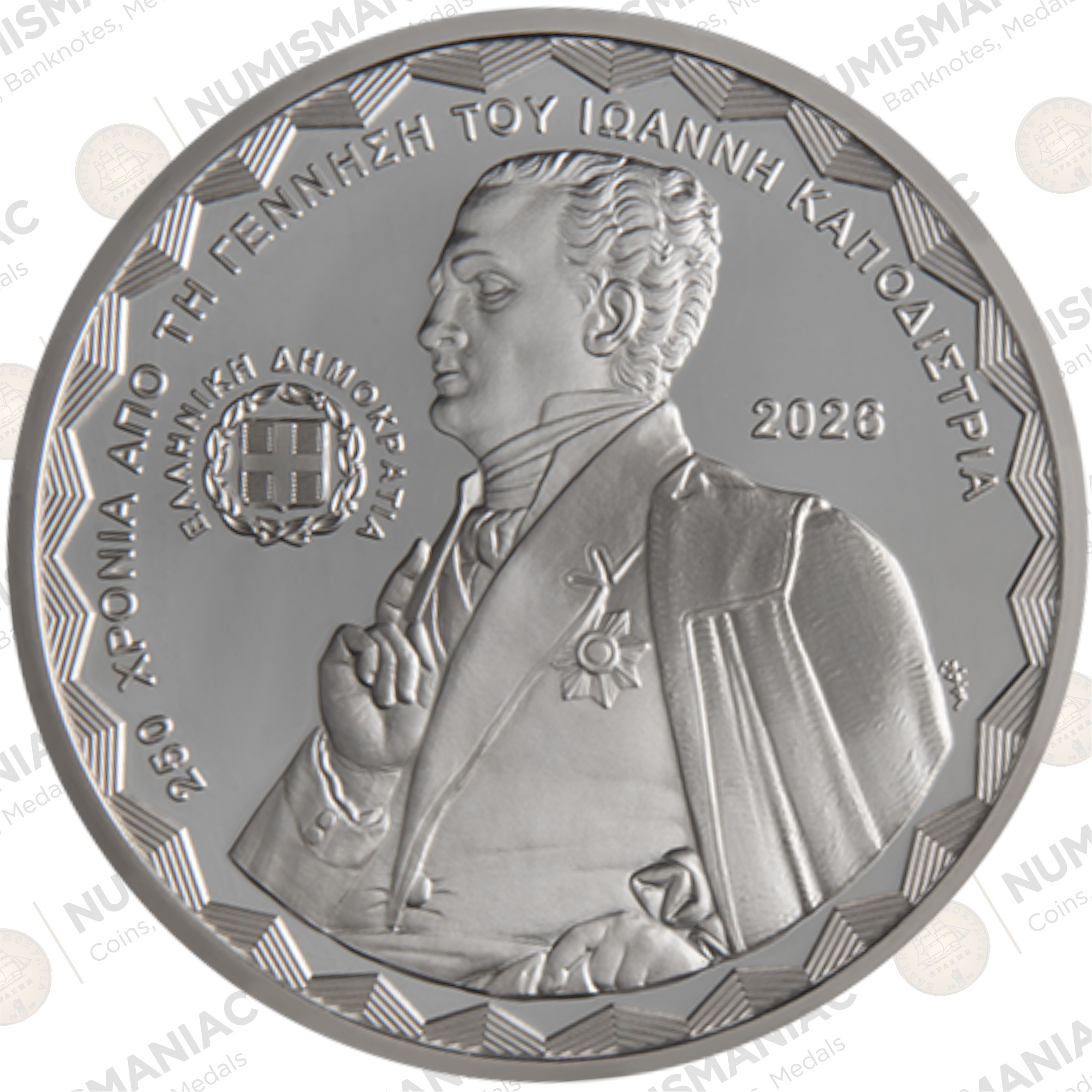 Born into a noble family of Corfu in 1776, Ioannis Kapodistrias (Count Capo d’Istria) studied medicine, philosophy and law in Italy. Returning to Corfu, he engaged in local politics, before entering the Russian diplomatic service in 1808. As an envoy of Tsar Alexander I, Kapodistrias contributed to the shaping of the Swiss Confederation and the drafting of its constitution. Although he considered the Greek Revolution premature, as Russian foreign minister he worked to forestall an intervention of the Great Powers in favour of the Ottoman Empire. He was eventually sidelined and took leave in 1822. He was elected by the Third National Assembly as Governor of Greece in 1827 and used his diplomatic prowess to secure Greece’s recognition as an independent state and obtain further territorial gains. He laid the foundations of the modern Greek state, establishing its first administrative, economic and military structures and promoting education, agriculture and the crafts. However, he met with strong opposition from entrenched interests, which led to his assassination on 27 September 1831.