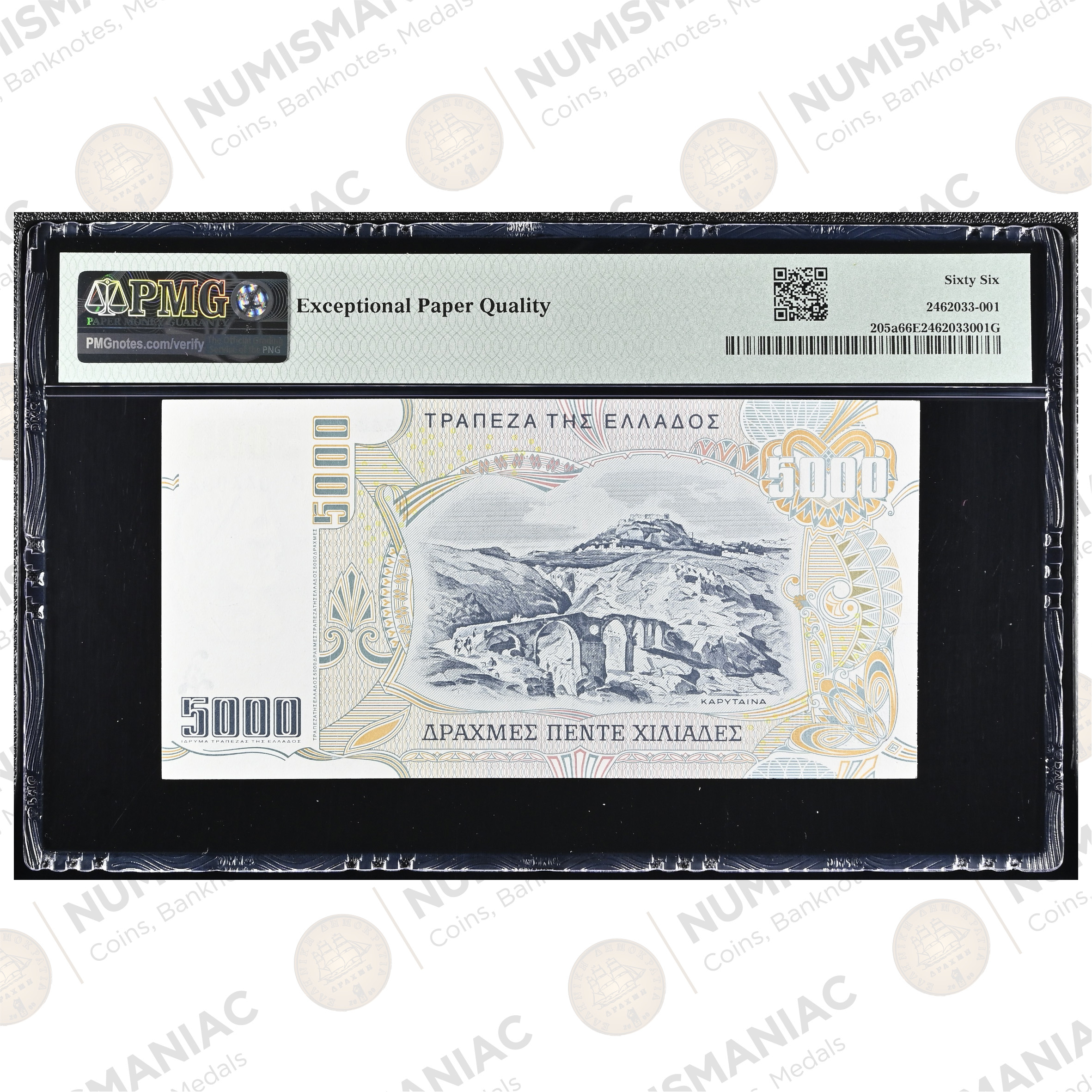 Tags 1997 drachma, 5000 drachmai, bank of greece, collectible paper money, epq banknote, euro transition currency, european banknotes, gem uncirculated banknote, greece banknote, greek currency, high grade banknote, modern greek notes, numismatics greece, pick 205a, pmg 66 epq