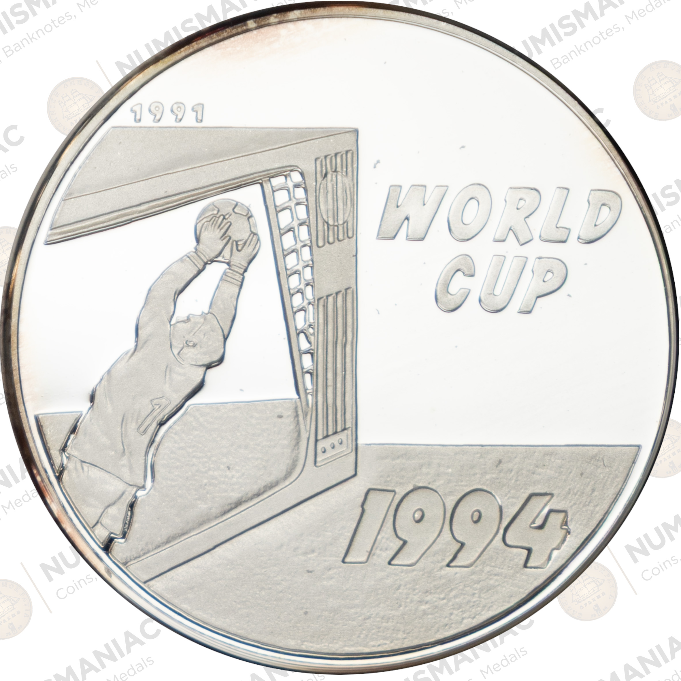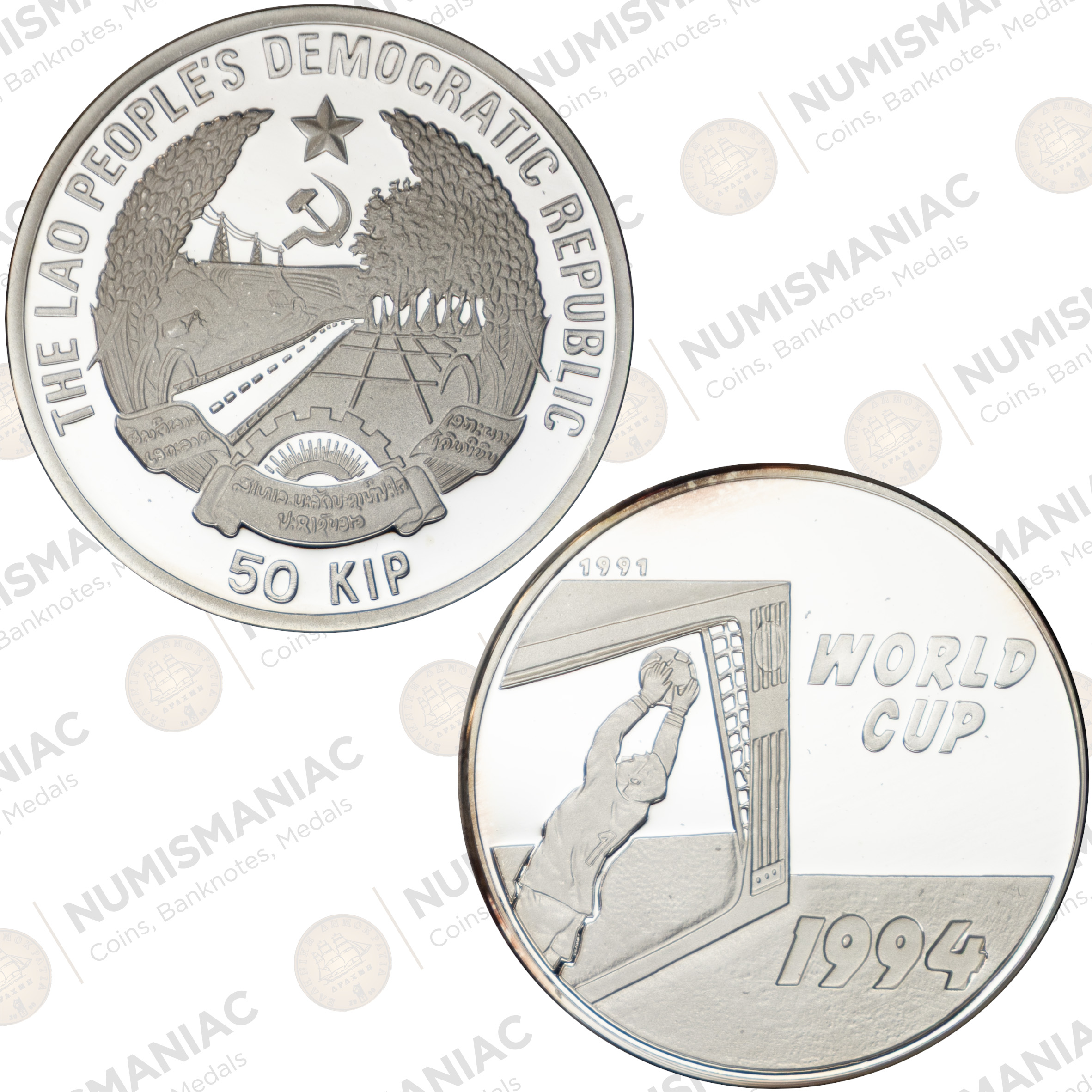 This 1994 Laos 50 Kip Silver Coin was issued to commemorate the 1994 FIFA World Cup, a globally significant football event that captured worldwide attention. Produced under the authority of the Bank of the Lao P.D.R., the coin reflects Laos’ participation in international commemorative numismatics.